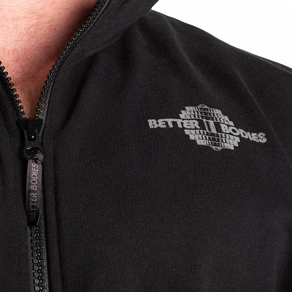 This hoodie has an oversized back print featuring Better Bodies legacy print as well as a small chest print .