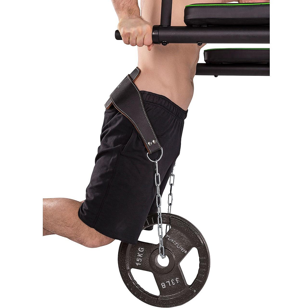 Der Dipgürtel von Tunturi dient dazu bei Übungen mit dem eigenen Körpergewicht, dieses zu erhöhen und somit die Belastung durch zusätzlichen Ballast zu steigern. Beim Tunturi Dipgürtel können Hantelscheiben oder Kettlebells eingehängt und somit das Gewicht für Dips oder Klimmzüge verstärkt werden.