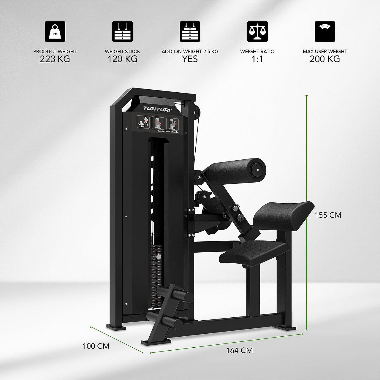 Die Tunturi Platinum Dual Back/Abdominal Combo vereint gezieltes Bauch- und Rückentraining in einer einzigen, kompakten Kraftstation. Mit diesem vielseitigen Fitnessgerät stärken Sie Ihre Rumpfmuskulatur durch kontrollierte, ergonomische und sichere Bewegungen - ideal für Muskelaufbau, Stabilitätstraining und Rehabilitation. Ausgestattet mit einem 120-kg-Gewichtsstapel, einer individuell einstellbaren Startposition sowie einem stabilen 2.5-mm-Stahlrahmen ist dieses Gerät die perfekte Wahl für ein effektives und komfortables Training.