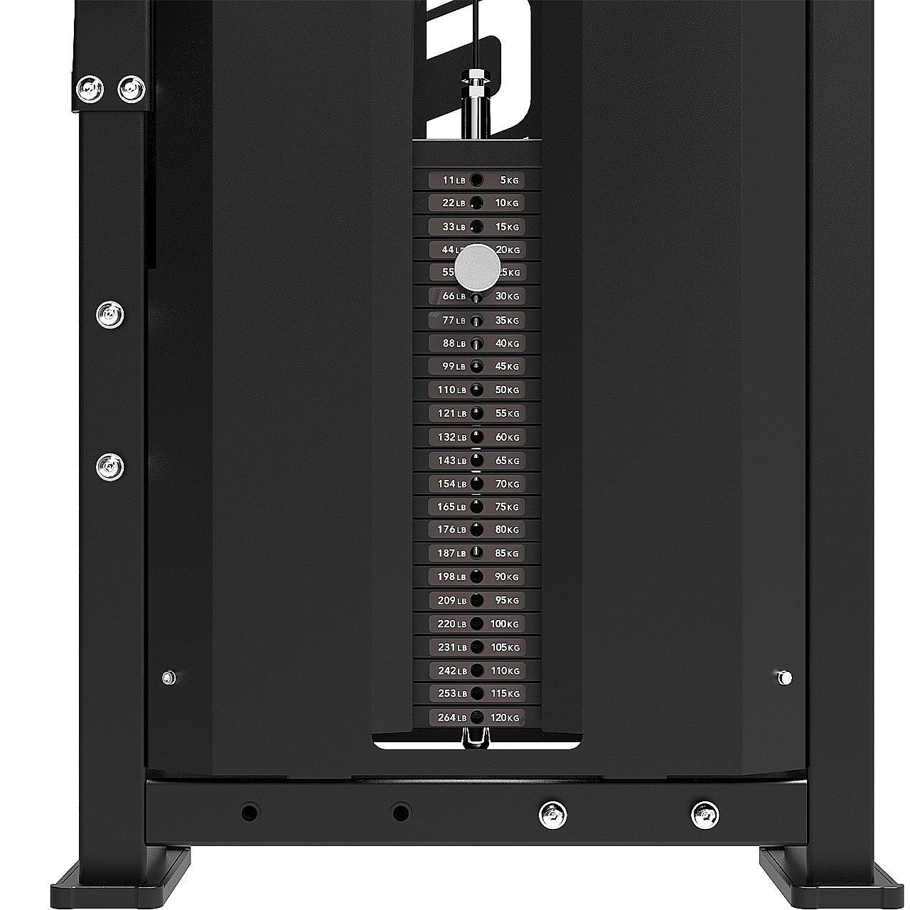Präziser TrainingsfortschrittDer integrierte Gewichtsstapel mit 120 kg und ein Übersetzungsverhältnis von 1:1 garantieren direkten Widerstand und ermöglichen progressives Training mit hoher Genauigkeit - auch dank zusätzlichem 2.5-kg-Gewicht.