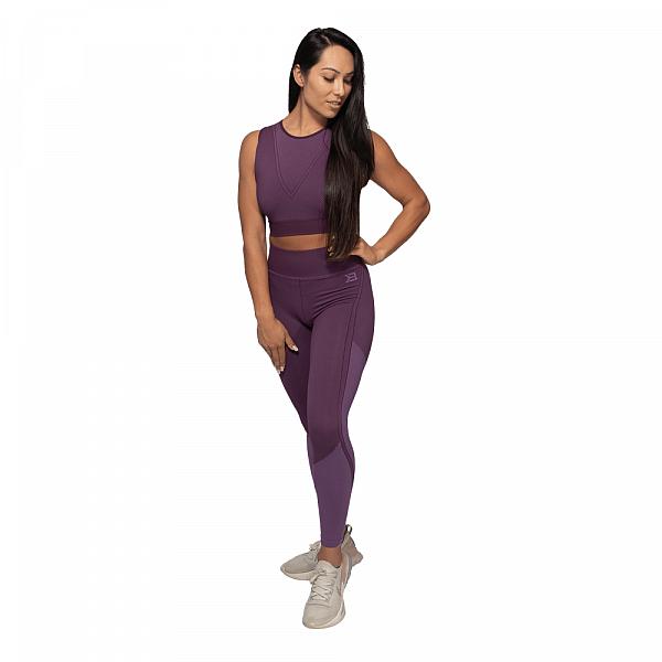 The royal purple color has a strong purple undertone and details while the black color has dark navy details. Combine them with the Roxy Seamless Top for a complete look.