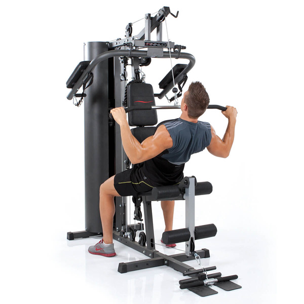 Fazit und ÜbersichtFINNLO Autark 600 ist eine umfangreiche Multikraftstation, welche mit über 30 Übungsvarianten und der hohen Gewichtsbelastung auch für ambitionierte Kraftsportler perfekt geeignet ist. Das Krafttraining mit der Autark 600 baut schnell und effektiv Muskulatur auf, kräftigt besonders auch eventuelle Schwachstellen wie Rücken und Beine und definiert Ihren gesamten Körper. Bei vielen Wiederholungen und geringerem Widerstand verbrennen Sie viele Kalorien und Fett und steigern so schnell auch Ihre Kraftausdauer. Brust, Rücken, Bauch, Arme, Schultern und Beine - alle wichtigen Muskelgruppen können mit der Autark 600 von FINNLO optimal trainiert werden. Im Lieferumfang enthalten ist zahlreiches, professionelles Studio-Zubehör enthalten: eine breite Latissimus-Stange, Cable Cross-Griffe, ein Trizeps-Seil sowie eine drehbar gelagerte Curl-Stange. Trotz der vielen Trainingsmöglichkeiten ist die FINNLO Autark 600 Kraftstation besonders platzsparend konstruiert. Mit Aufstellmaßen von nur 196 x 110 x 198 cm (L x B x H) kann die Kraftstation auch in kleineren Wohnungen optimal untergebracht werden.