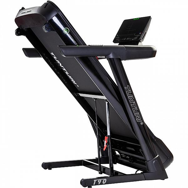 Mit einer grosszügigen Lauffläche von 153 x 55 cm und einem ausgesprochen gut gefederten Laufdecksystem der neusten Tunturi T-FLEX COMFORT TOP Technologie sind Tunturi Endurance Laufbänder Spitzenreiter in Ergonomie, Gelenkschonung und Laufkomfort. Trotz ihrer Grösse können diese Geräte dennoch platzsparend sein, wenn man sie hochklappt sind. So kann die Länge hochgeklappt von 193 cm auf 137 cm reduziert werden. Das Benutzergewicht ist bis 150 kg garantiert.